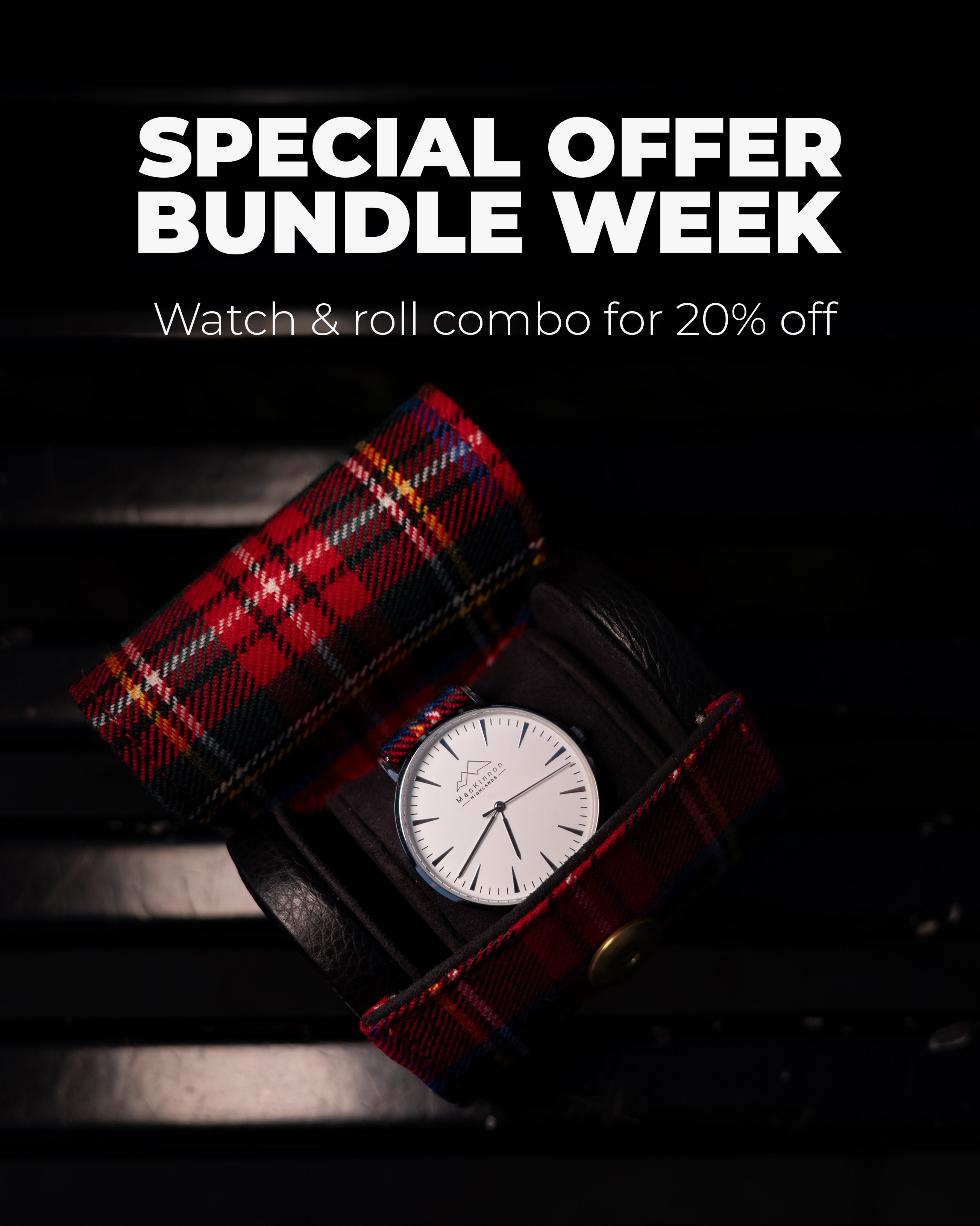Using authentic Scottish tartan, each watch is custom-made with a tartan of your choice.